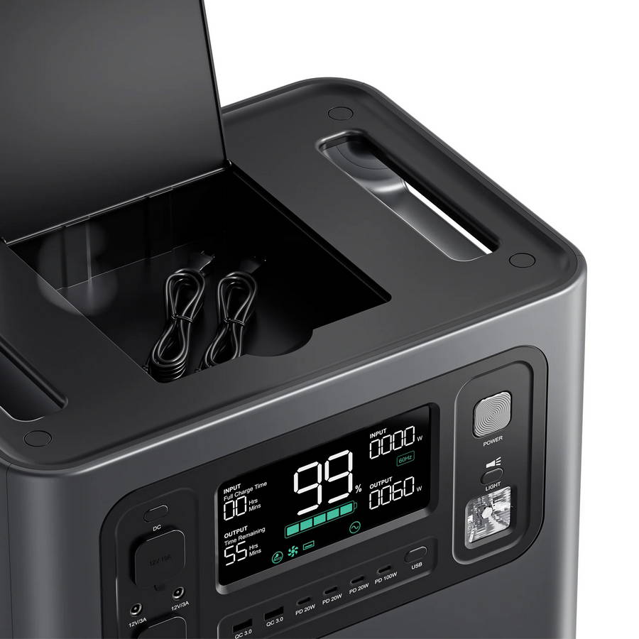 Вбудована система керування батареєю BMS відповідає за безпеку та довгий термін служби, а функція швидкого заряджання суттєво скорочує час підготовки станції до роботи. Завдяки компактному форм-фактору та зручному перенесенню ця зарядна станція підходить для дому, подорожей і резервного живлення.